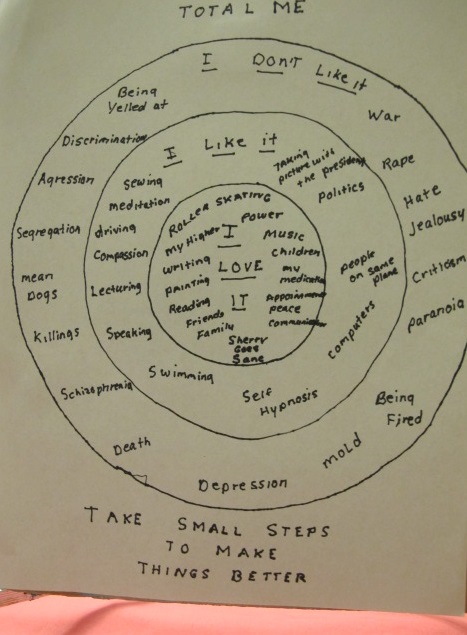 Steps to healing. Several years ago, I made a diagram of the total me: what my views were towards life and how I fit into this gigantic world revolving around me.