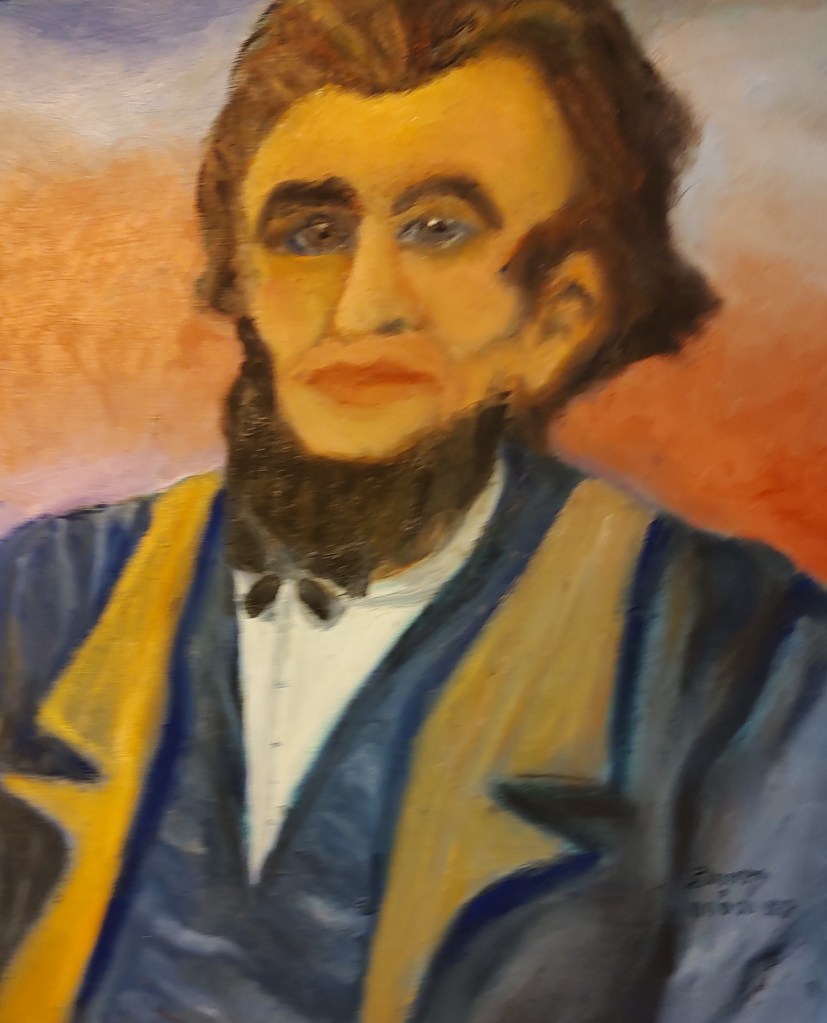 My Portrait of President Lincoln This entry was posted on August 17, 2025, in News and events. Bookmark the permalink. Leave a comment Finished Painting my Portrait of President Abraham Lincoln today, Artist and Author Sherry M Joiner Share this: Share on X (Opens in new window) X Share on Facebook (Opens in new window) Facebook Like Loading... Related
