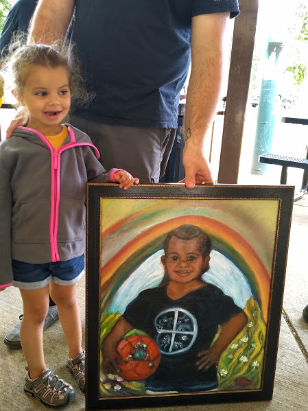 Happy Black History Month My Family, my great grand children, their mother. Naomi, my husband Joe and me. Painting of Little Gracie, with Soccer Ball by Artist and Author Great Grandma Sherry, Painting of Great Grand son Little Joe having fun in the wind by Artist and Author Great Grandma Sherry.