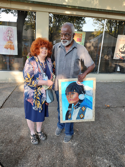 My Friend, Lennis wanted to celebrate my Black History Month on my Birtday, First FridayArt Sale in Miwaukie, He purchased my treasured Navajo Painting I did at my Art Block I felt a Beautiful soul connection.. Artist and Author Sherry M